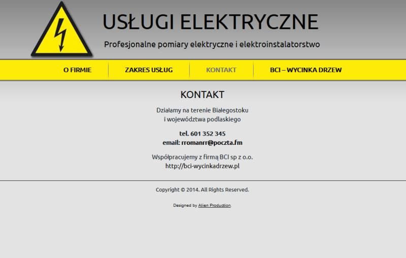 Strona internetowa elektryczne-uslugi.com – firmy która zajmuje się profesjonalnymi usługami elektrycznymi na terenie Białegostoku i okolic.