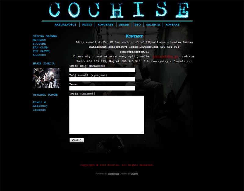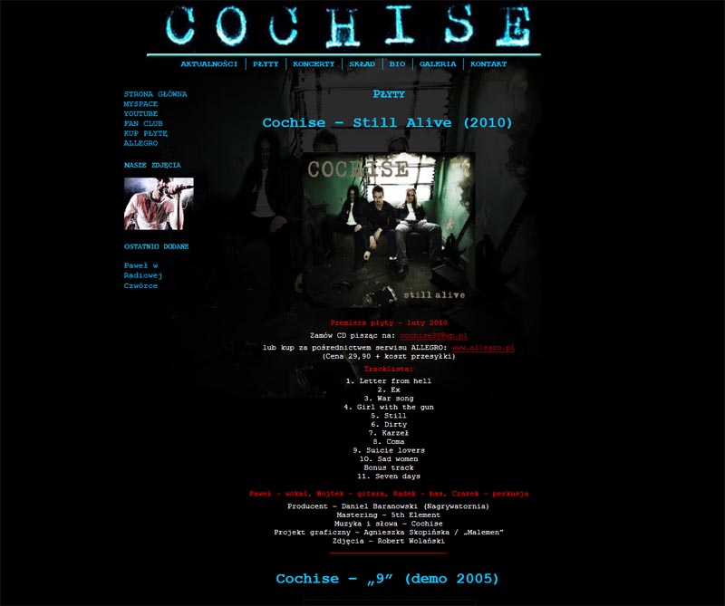 Od 1 lutego rusza oficjalna strona zespołu rockowego Cochise. Członkami zespołu są: Paweł (vocal), Czarek (perkusja), Wojtek (gitara) i Radek (bas). Więcej informacji już wkrótce! Zapraszam na stronę cochise.pl
