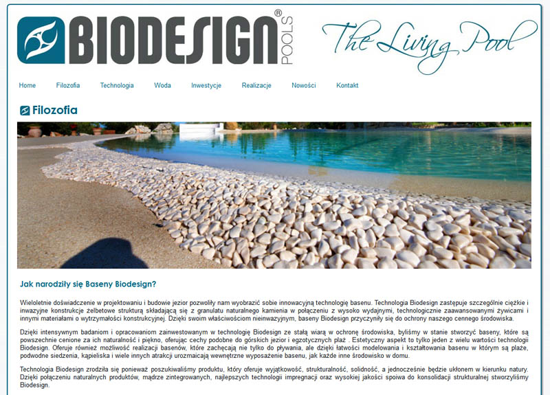 Polska wersja strony biodesignpools.com – producenta wysokiej klasy basenów kąpielowych. Żywe baseny – niesamowite konstrukcje imitujące prawdziwe jeziora czy stawy kąpielowe. Serdecznie zapraszamy na stronę www.biodesignpools.pl