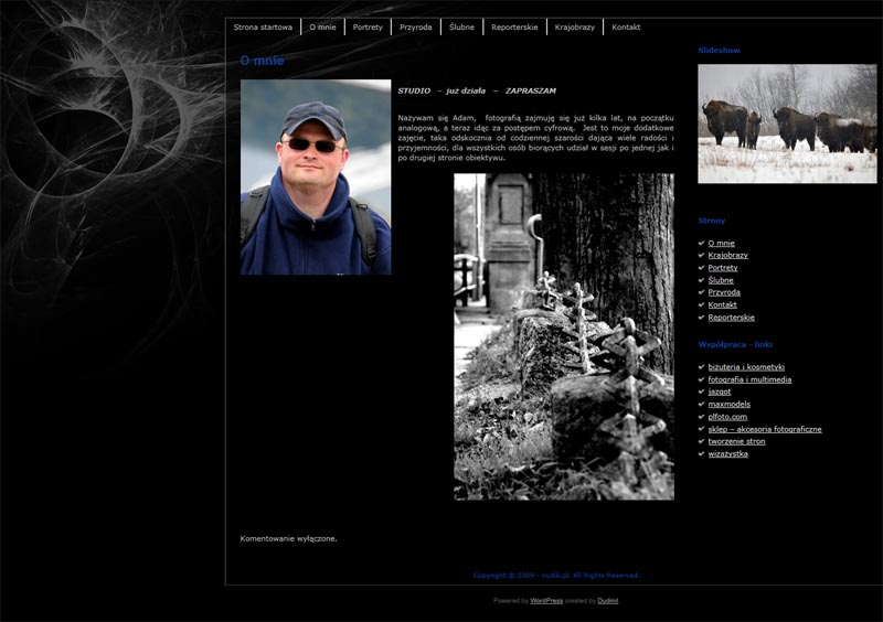 Strona pasjonata fotografii – Nudika, fotografią zajmującego się już kilka lat, na początku analogową, a teraz idąc za postępem – cyfrową. Jest to jego dodatkowe zajęcie, taka odskocznia od codziennej szarości dająca wiele radości i przyjemności, dla wszystkich osób biorących udział w sesjach. Zapraszam na stronę nudik.pl